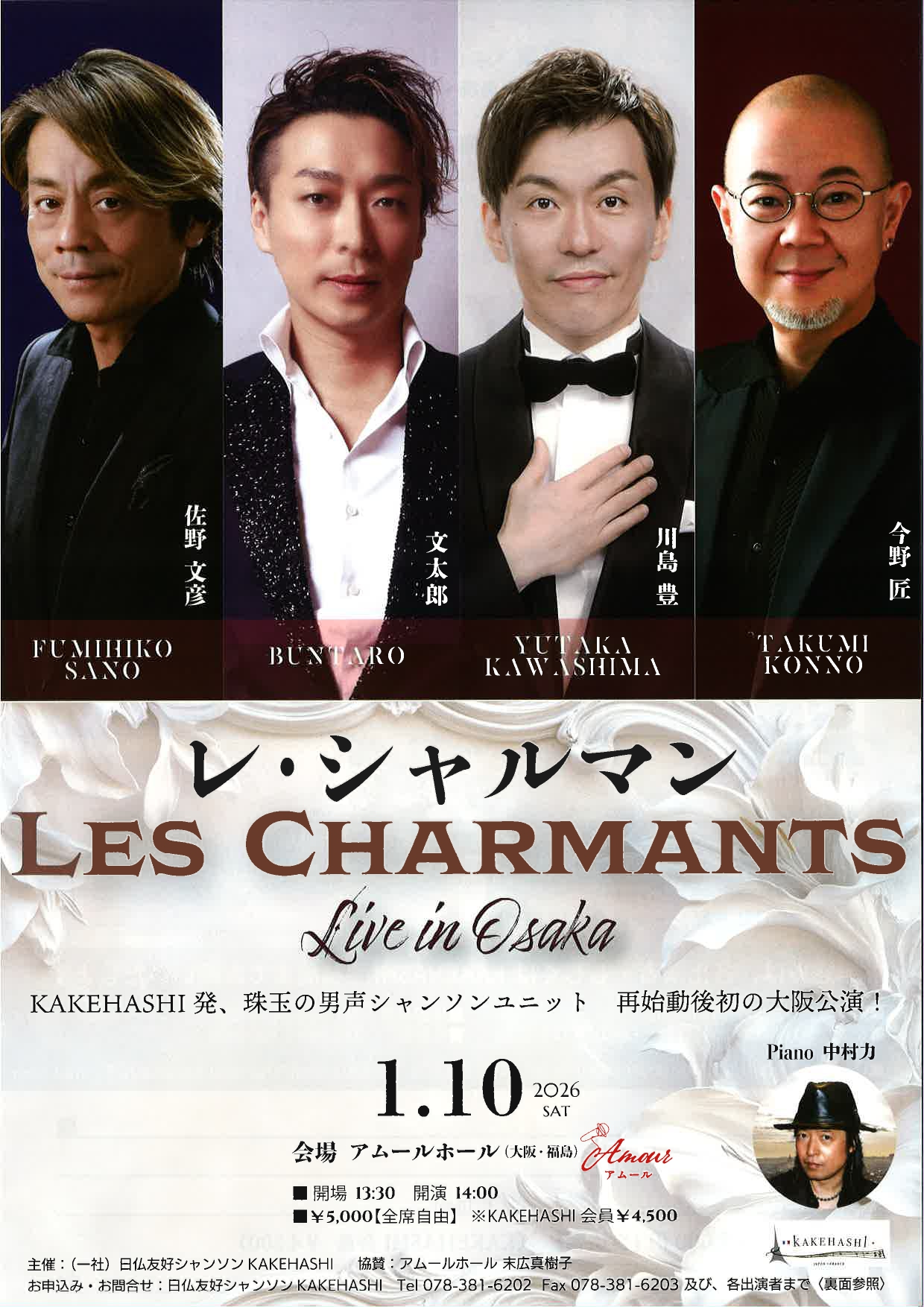 ◆11月10日(月) アムールホール(大阪・福島) ◆13:30 開場 14:00 開演 ◆料金 ¥5,000 全席自由 ※KAKEHASHI会員¥4,500 ↓詳細はこちらの画像をクリック↓