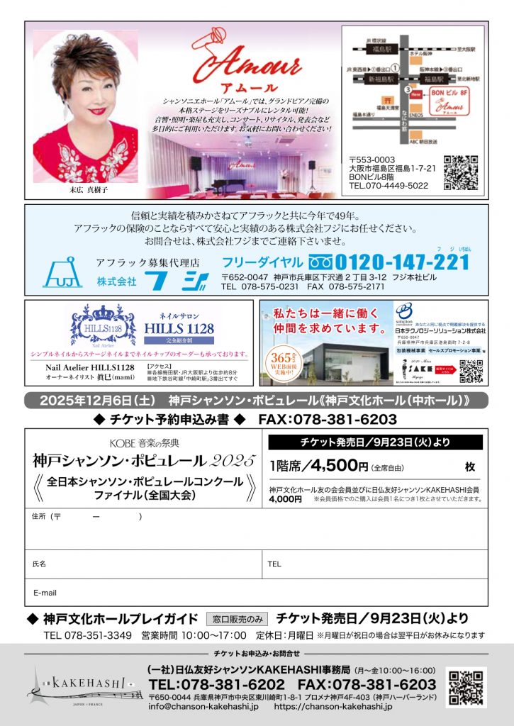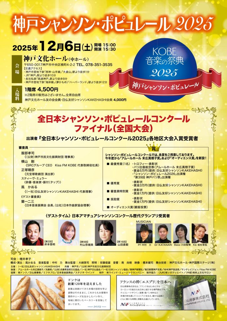 全日本シャンソン・ポピュレールコンクール 12月6日(土)神戸文化ホールにて